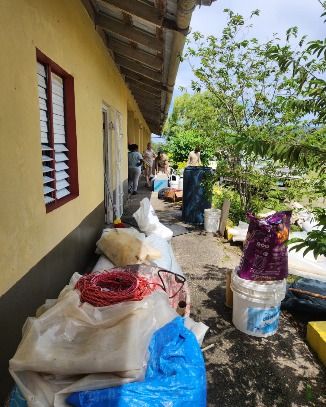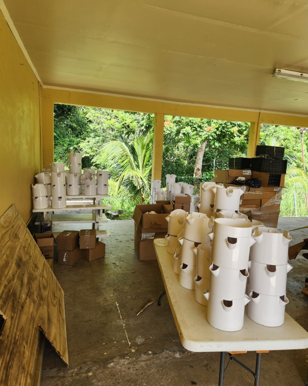 In addition to prayer, we know that there is also power in preparation. We’ve been hustling here at ACE to safeguard our grounds, equipment, and overall ministry. We’ve taken up and stored all outdoor pipes and carefully closed up all of our beehive equipment. Our newly acquired and set-up aeroponic towers have been wrapped up to safely secure them and keep them from blowing away. All hoses were rolled up and stowed away. And most of our smaller equipment, like our chocolate machines, have been unplugged and tied up with garbage bags. We’ve also moved the cows to higher ground.